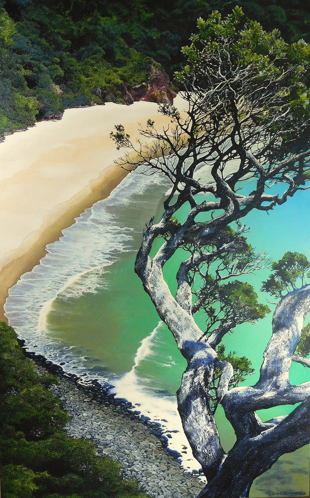 Aside from my home studio situated at 1065 Tairua Rd Whangamata, my artwork, both original and prints, can be seen at Bread & Butter Gallery in Whitianga, The Little Gallery of Fine Arts in Tairua, Heritage Gallery in Cambridge, and The Mobile Gallery in Mt Eden, and Art Matakana. Visit my website at: www.gvsimpson.vc.net.nz or contact me on 07-8656113, Mob 0274382504, Email: gvsimpson@xtra.co.nz.