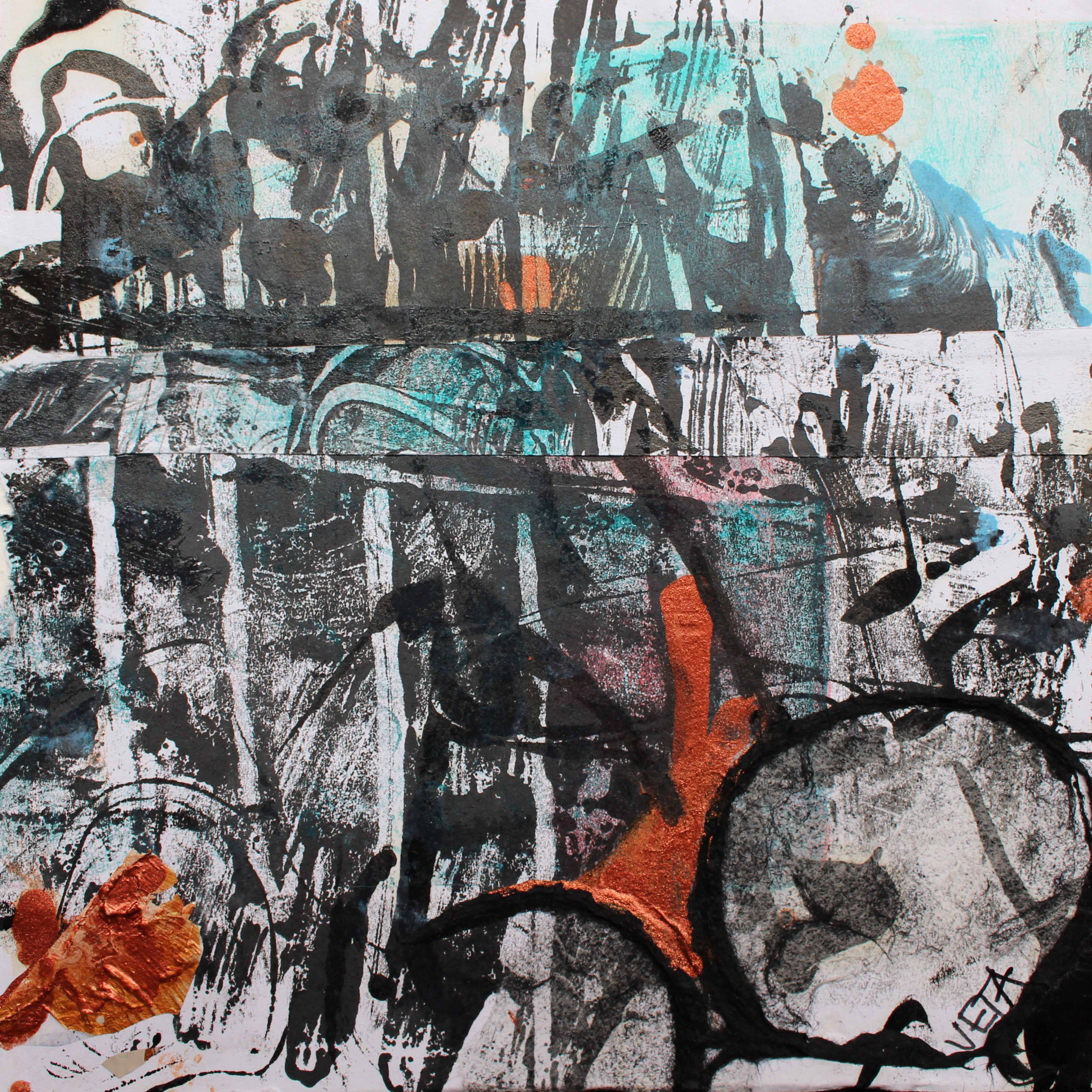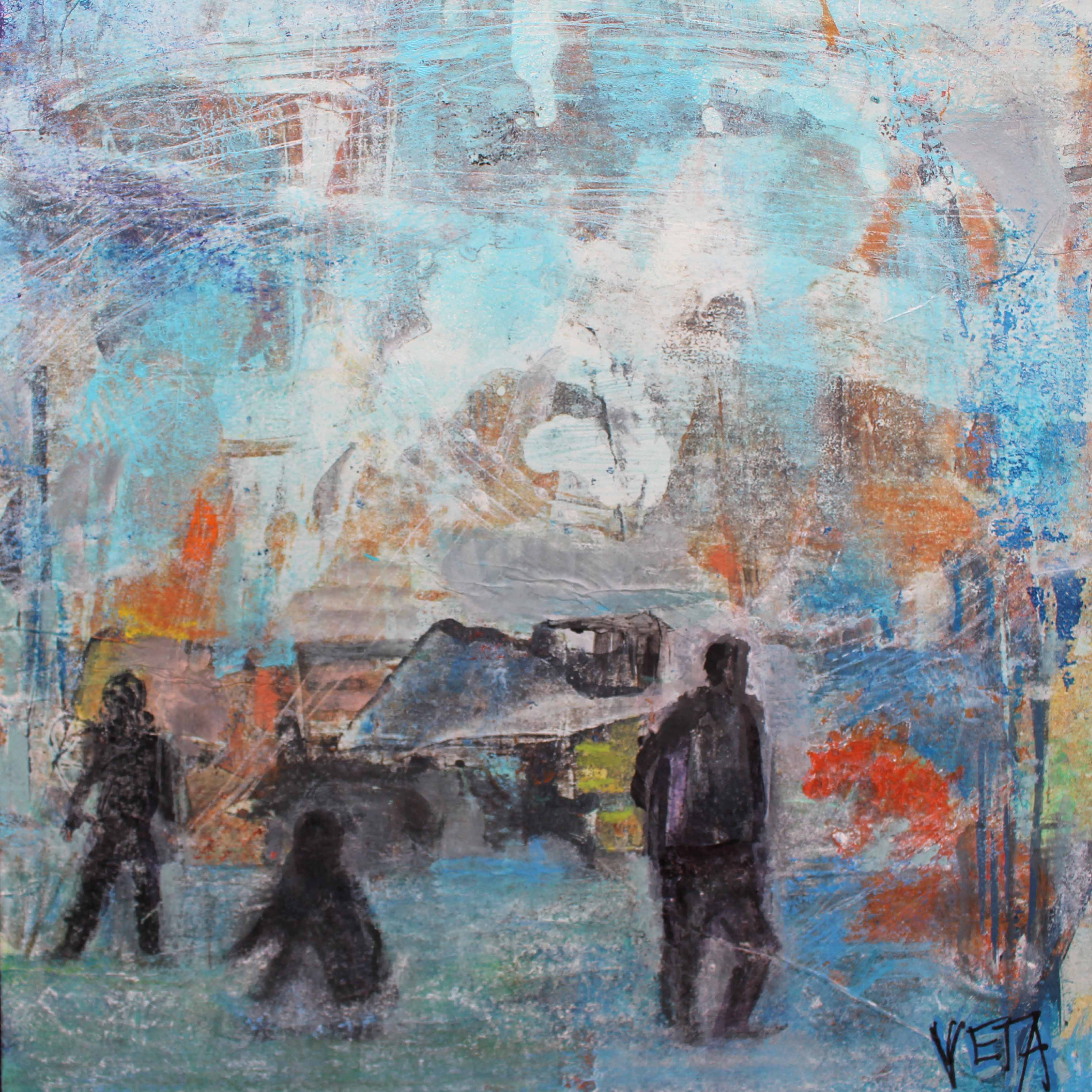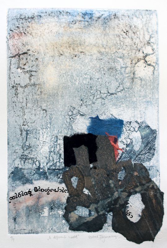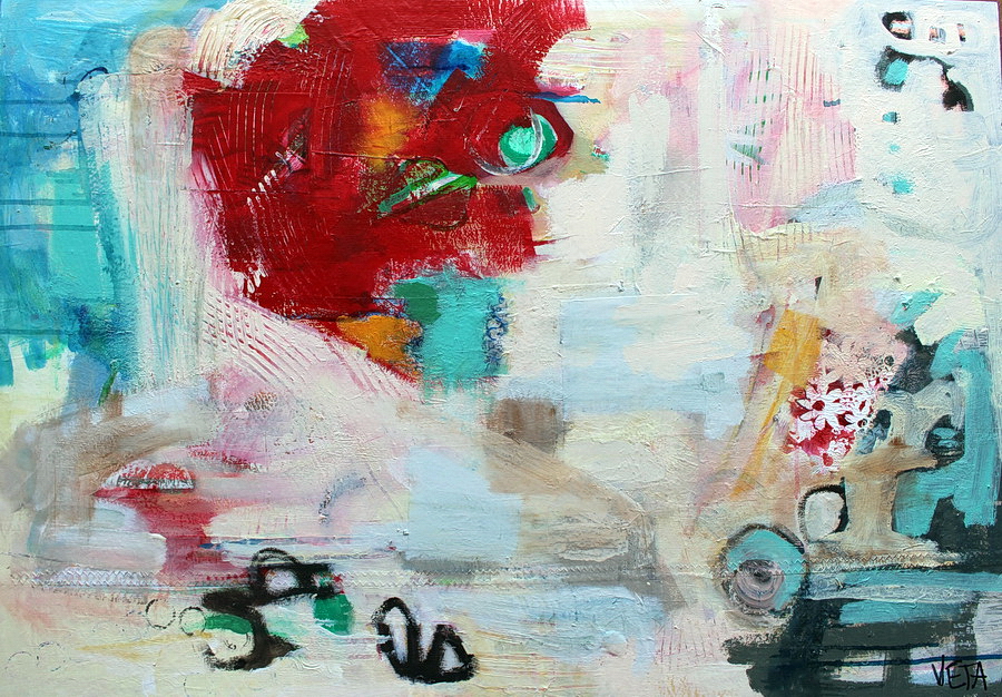 Verena is a mixed media artist. Mixed media allows combining various substances to the paint and various materials onto the painting surface (paper, sand, inks and more).